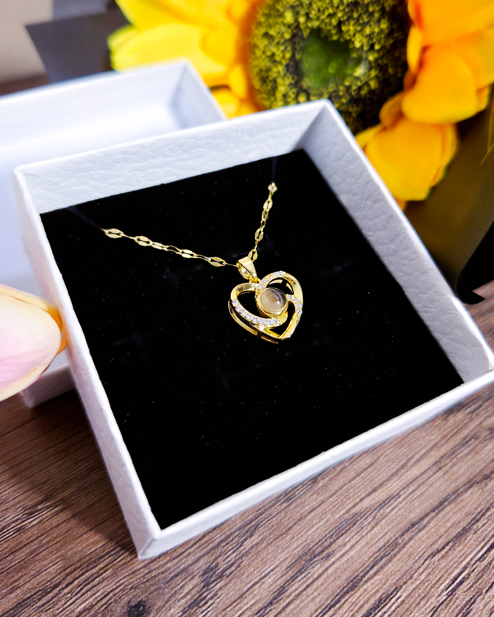Este collar de corazón diamantados te permite expresar tu amor en 100 idiomas diferentes. Hecho con materiales de alta calidad, este collar es un símbolo de amor duradero que es perfecto para regalar a esa persona especial. Sorprende a tu ser querido con esta joya única y significativa.
